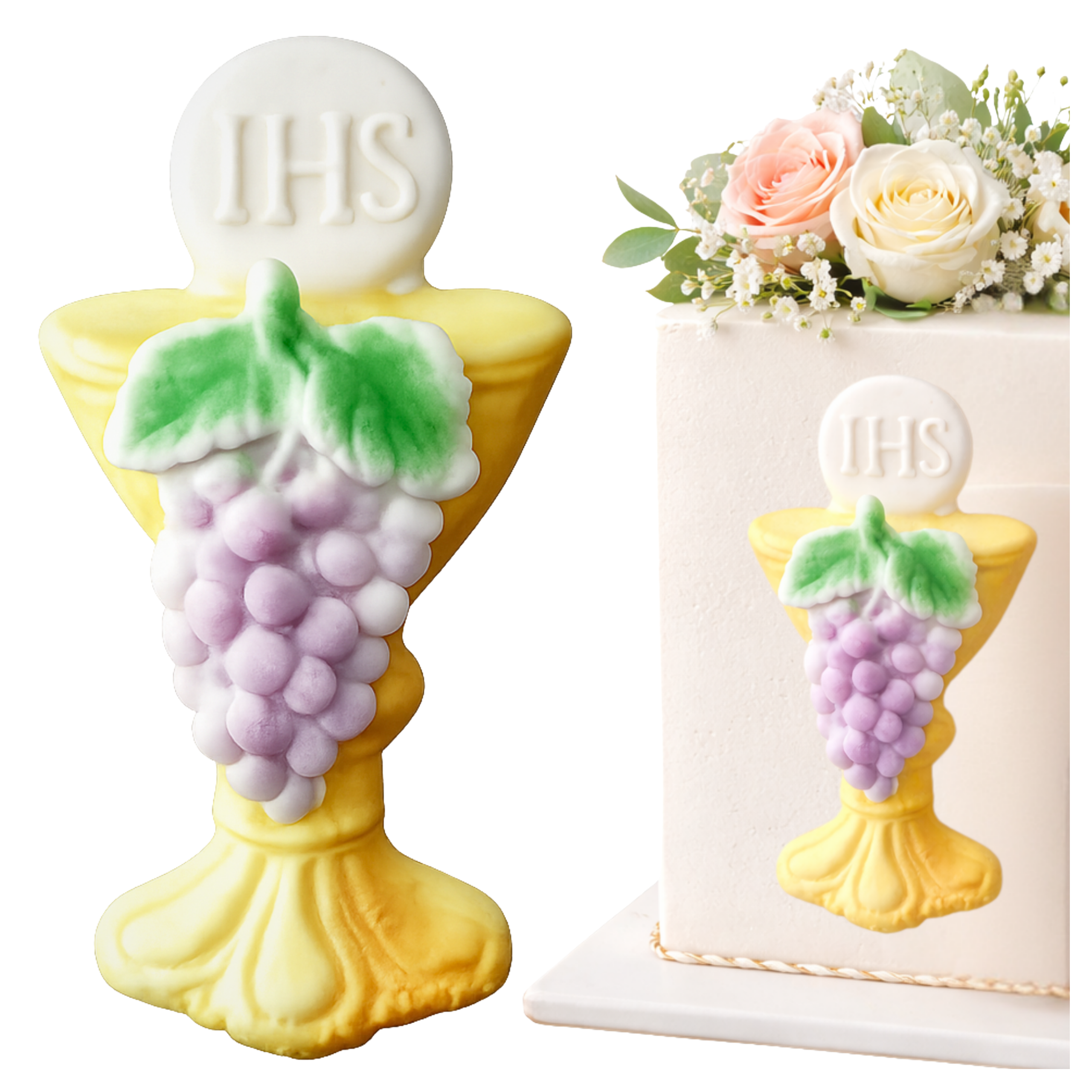 Hostia IHS beziki cukrowe 5 sztuk bezy biało złote dekoracje komunijneHostia IHS beziki cukrowe 5 sztuk bezy biało złote dekoracje komunijne