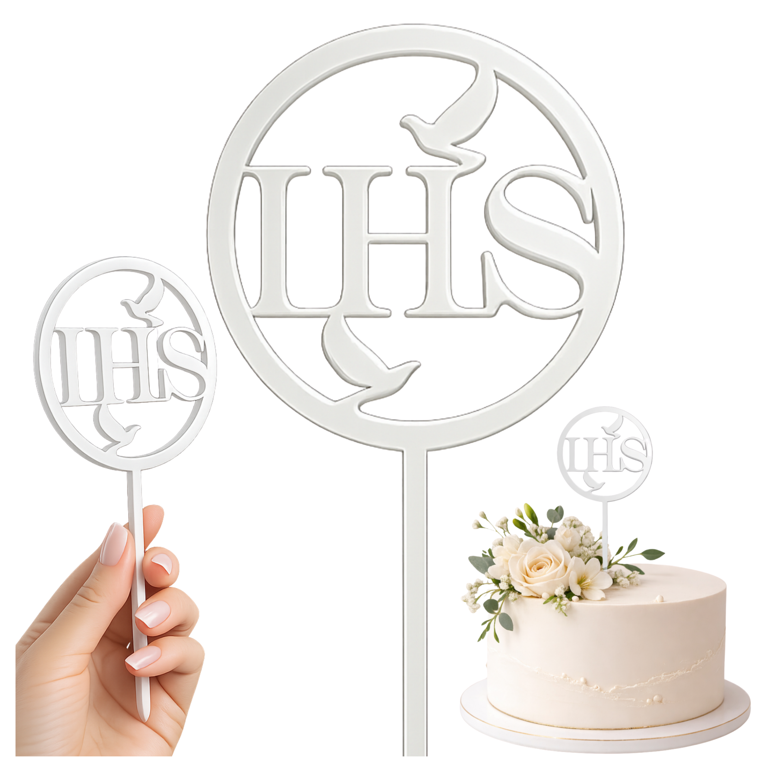 Topper dekoracja na tort Komunia Święta złoty IHS ozdoby komunijne