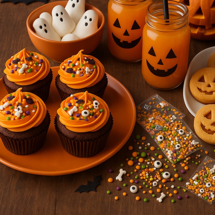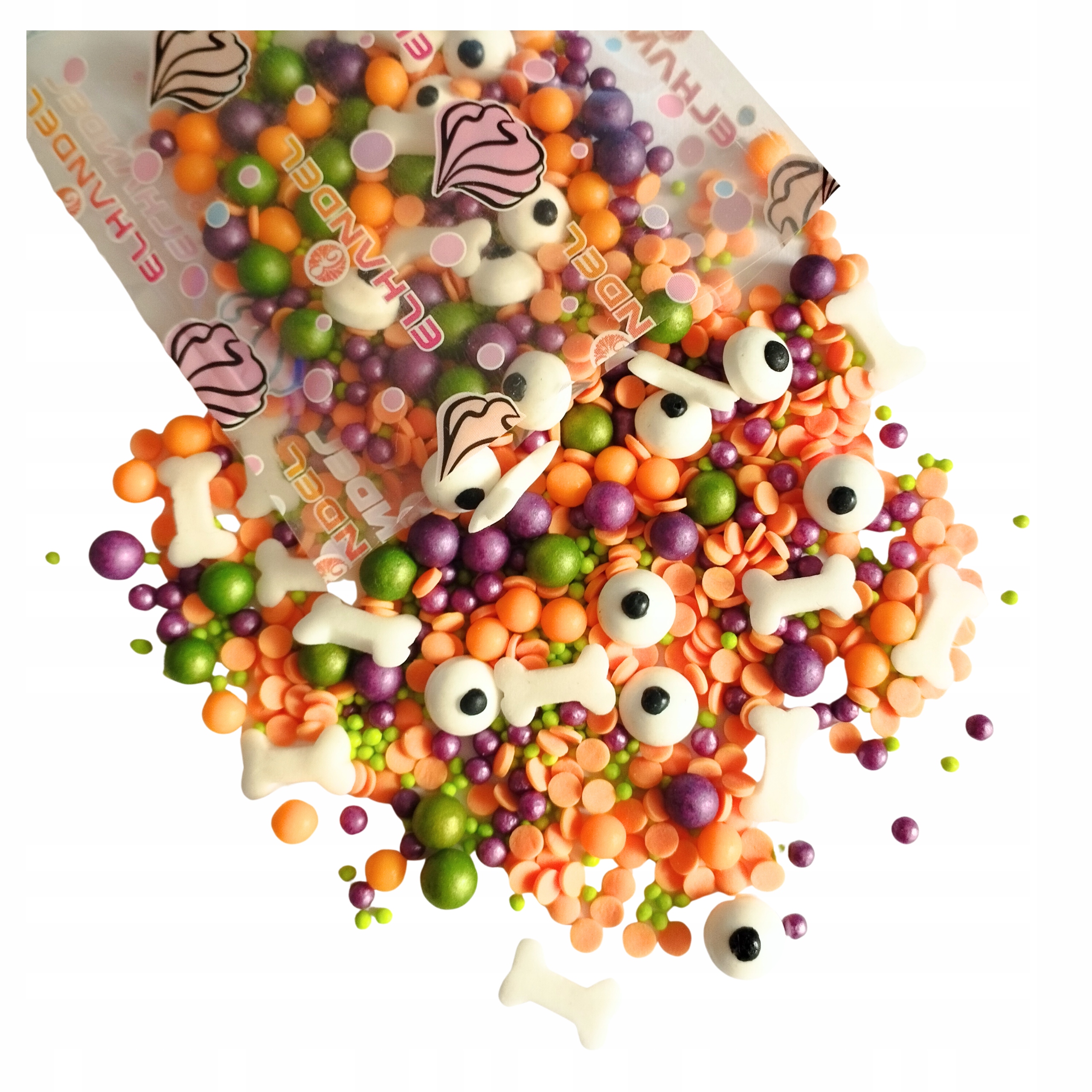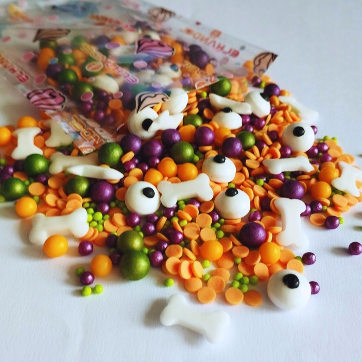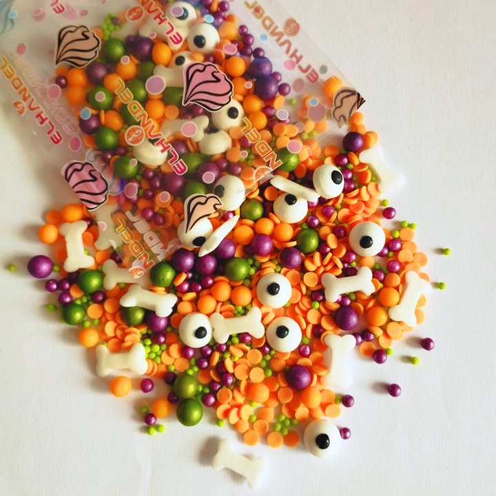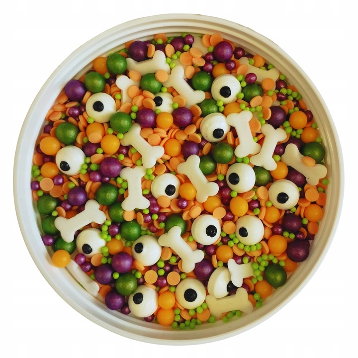 Posypka cukrowa na tort halloween perełki maczki kofetti oczy kości 50g