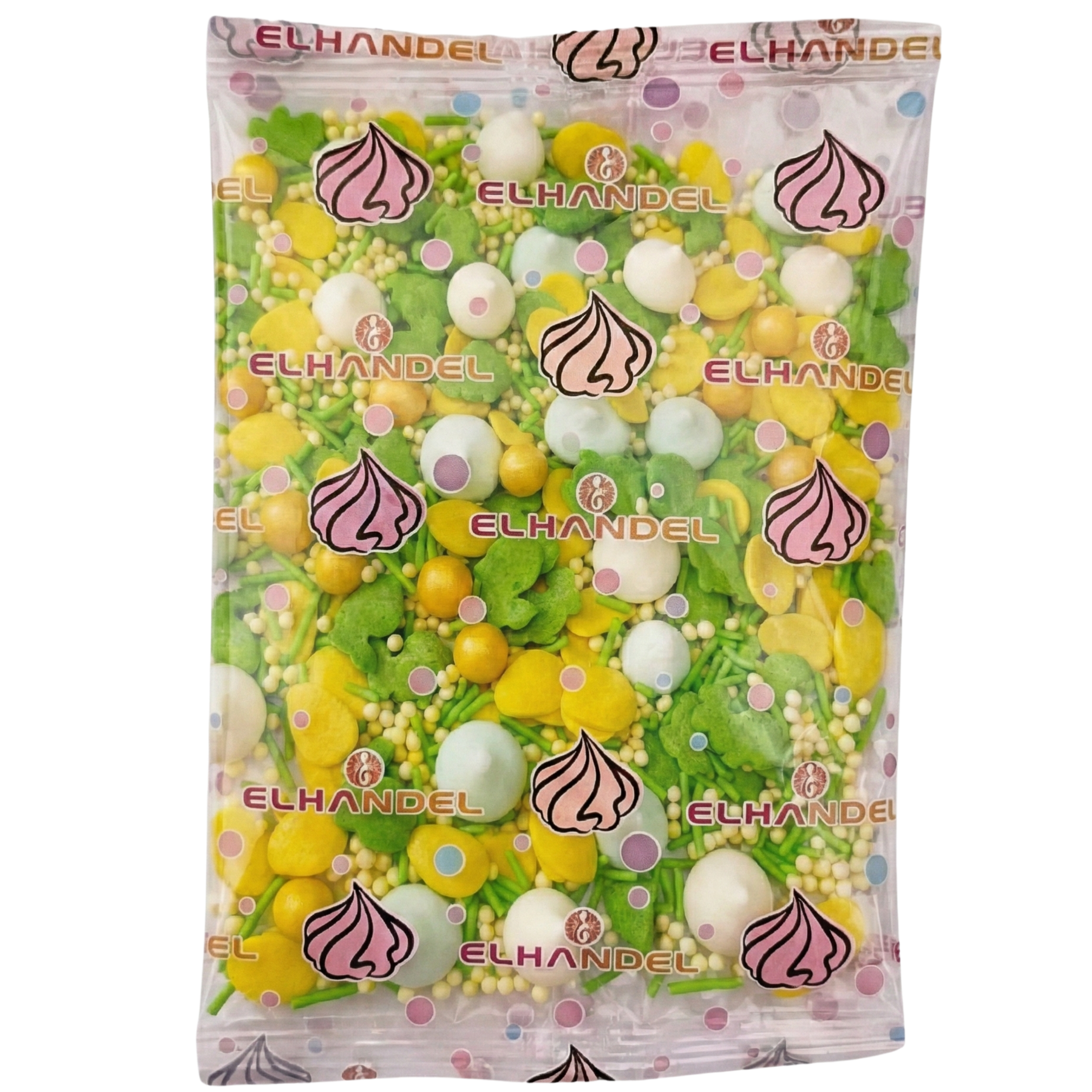 Posypka cukrowa żółta Składniki: cukier biały, mąka pszenna, melasa skrobiowa, środek glazurujący capol, barwnik spożywczy: E102. Zawiera barwnik E102, które mają szkodliwy wpływ na aktywność i uwagę dzieci. Bez GMO. Warunki przechowywania: przechowywać w ciemnym miejscu w temperaturze (18 ± 3% ) °C przy wilgotności względnej nie większej niż 75%. Wartość odżywcza w 100 g produktu: węglowodany - 90 g, w tym cukry - 87 g, tłuszcz -0,2 g, w tym tłuszcze nasycone -0,03 g, białko - 2,0 g, sól -0,01 g. Wartość energetyczna (kcal) w 100 g produktu: 1557kJ/372 kcal. Beziki mini żółte Składniki: cukier puder.woda.kwasek cytrynowy.albumina JAJA Kurzego. Barwnik:E160a.Wartości odżywcze 100g: Energia 1652 kj/395 kcal. Tłuszcz 0.1 g w tym kwasy tłuszczowe nasycone 0g Węglowodany 97g- w tym cukry 97g.Białko 1.6 g. Sól 0.04 g. Beziki mini zielone Składniki: cukier puder.woda.kwasek cytrynowy.albumina JAJA kurzego. Barwnik:E133-E160a. Wartości odżywcze 100g: Energia 1652 kj/395 kcal. Tłuszcz 0.1 g w tym kwasy tłuszczowe nasycone 0g. węglowodany 97g-w tym cukry 97 g.Białko 1.6 g. Sól 0.04 g Posypka cukrowa: Cukrowe zielone zajączki Składniki: cukier, mąka pszenna, rafinowany olej palmowy, melasa, modyfikowana skrobia kukurydziana, substancje zagęszczające: guma guar (E412), guma ksantanowa (E415), CMC (E466), guma arabska (E414), substancje glazurujące: (tłuszcz rośliny, szelak), talk spożywczy, barwnik: E102, E133. E102 ma szkodliwy wpływ na aktywność i uwagę u dzieci. Zawiera gluten. Wartość odżywcza w 100 g produktu: wartość energetyczna 414 kcal/ 1756 kJ; tłuszcz 4 g w tym kwasy tłuszczowe nasycone 0,31 g; węglowodany 95g w tym cukry 87g, białko <0,5 g; sól 0,011g Pałeczki cukrowe seledynowe Składniki: cukier biały, syrop skrobiowy, skrobia kukurydziana, trigliceryd, substancja glazurująca Capol 425M, talk spożywczy (E553b), barwniki spożywcze: tartrazyna (E102), błękit brylantowy (E133). Zawiera barwnik E102 który może mieć szkodliwy wpływ na aktywność i skupienie uwagi u dzieci. Wartość odżywcza na 100 g produktu: tłuszcz -0,89 g, w tym kwasy tłuszczowe nasycone - 0,86 g, węglowodany -89,7 g, w tym cukry - 88,1 g, białko -0,01 g, sól -0,01 g. Wartość energetyczna: 365 kcal (1524 kJ). Warunki przechowywania: przechowywać w ciemnym miejscu w temperaturze (18± 3%) °C przy wilgotności względnej nie większej niż 75%. PEREŁKA PERŁOWA ŻÓŁTA Składniki: Cukier, dekstroza, mąka pszenna, Syrop glukozowy E101, E 172, E 555, Powłoka: subst. glazurująca: szelak. Zawiera GLUTEN. Wartość odżywcza w 100g Wartość energetyczna 391 kcal/ (kcal/kJ] 1663 kJ Tłuszcz [g] <0,1 g w tym kwasy nasycone [g] <0,1 g Węglowodany [g] 97,6g w tym cukry [g] 96 g Białko [g] 0,2 g Sól [g] 0,025 g Warunki przechowywania: Przechowywać w suchym i chłodnym miejscu. Posypka cukrowa Wielkanocna Jajka żółte Składniki: cukier biały, mąka pszenna wysokogatunkowa, rafinowany wybielony i dezodoryzowany olej palmowy, syrop skrobiowy, zmodyfikowana skrobia kukurydziana (E1422), substancje zagęszczające: guma guar (E412), guma ksantanowa (E415), karboksymetyloceluloza (E466), substancja glazurująca (szelak E904, olej roślinny, etanol), talk spożywczy (E553b), guma arabska (E414), barwnik spożywczy. tartrazyna (E102). Zawiera barwnik E102, który może mieć szkodliwy wpływ na aktywność i skupienie uwagi u dzieci. Warunki przechowywania: przechowywać w suchym i chłodnym miejscu. Wartość odżywcza w 100 g produktu: Wartość energetyczna 375 kcal / 1568 kJ, tłuszcz 3,43 g w tym kwasy tłuszczowe nasycone 0.19 g, węglowodany 84,57 g w tym cukry 58,9 g białko 3,3 g sól 0,01 g Konfekcjonowanie i dystrybucja: Firma Handlowa ELHANDEL Elżbieta Łojewska ul. Słowackiego 5, 19-200 Grajewo