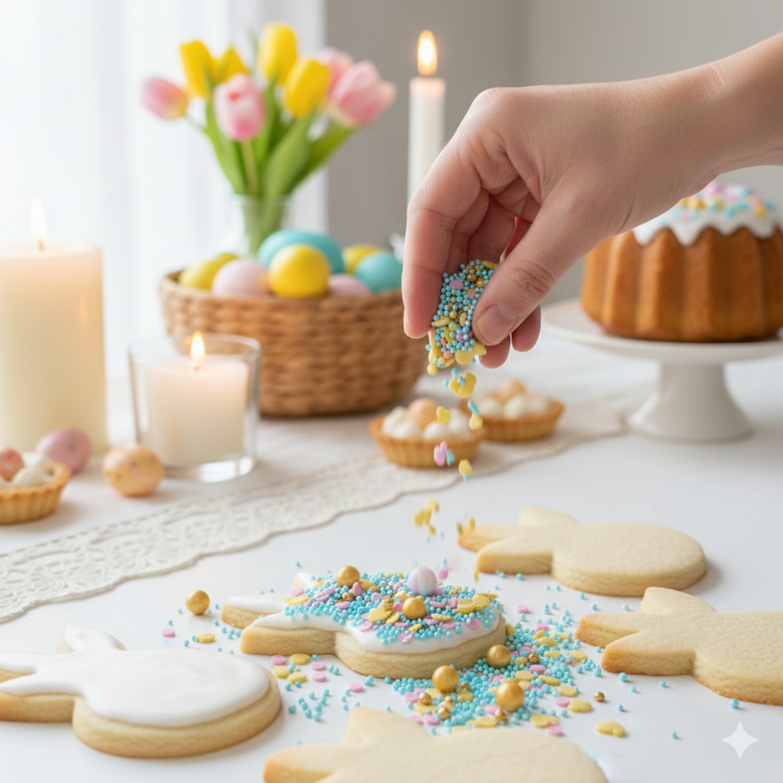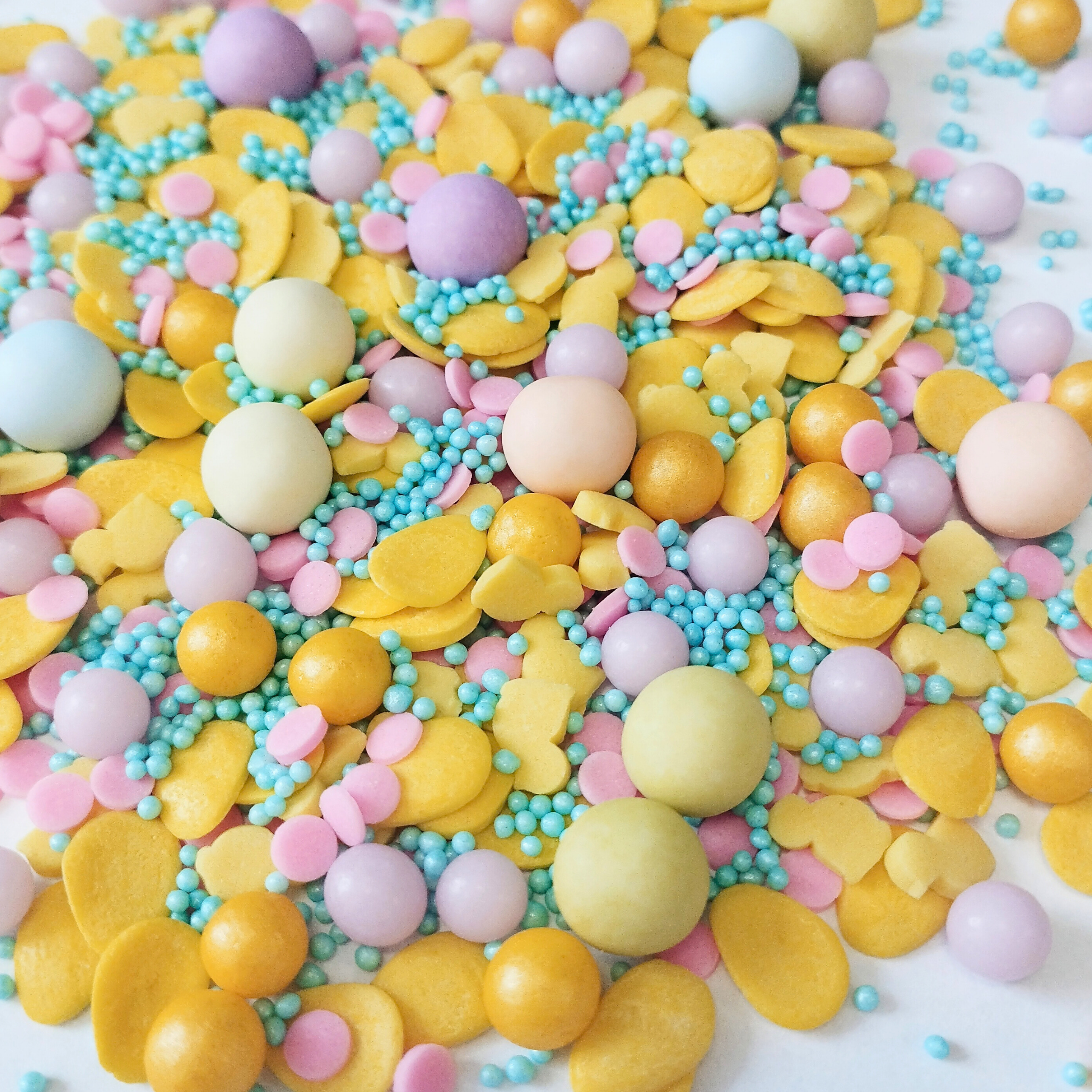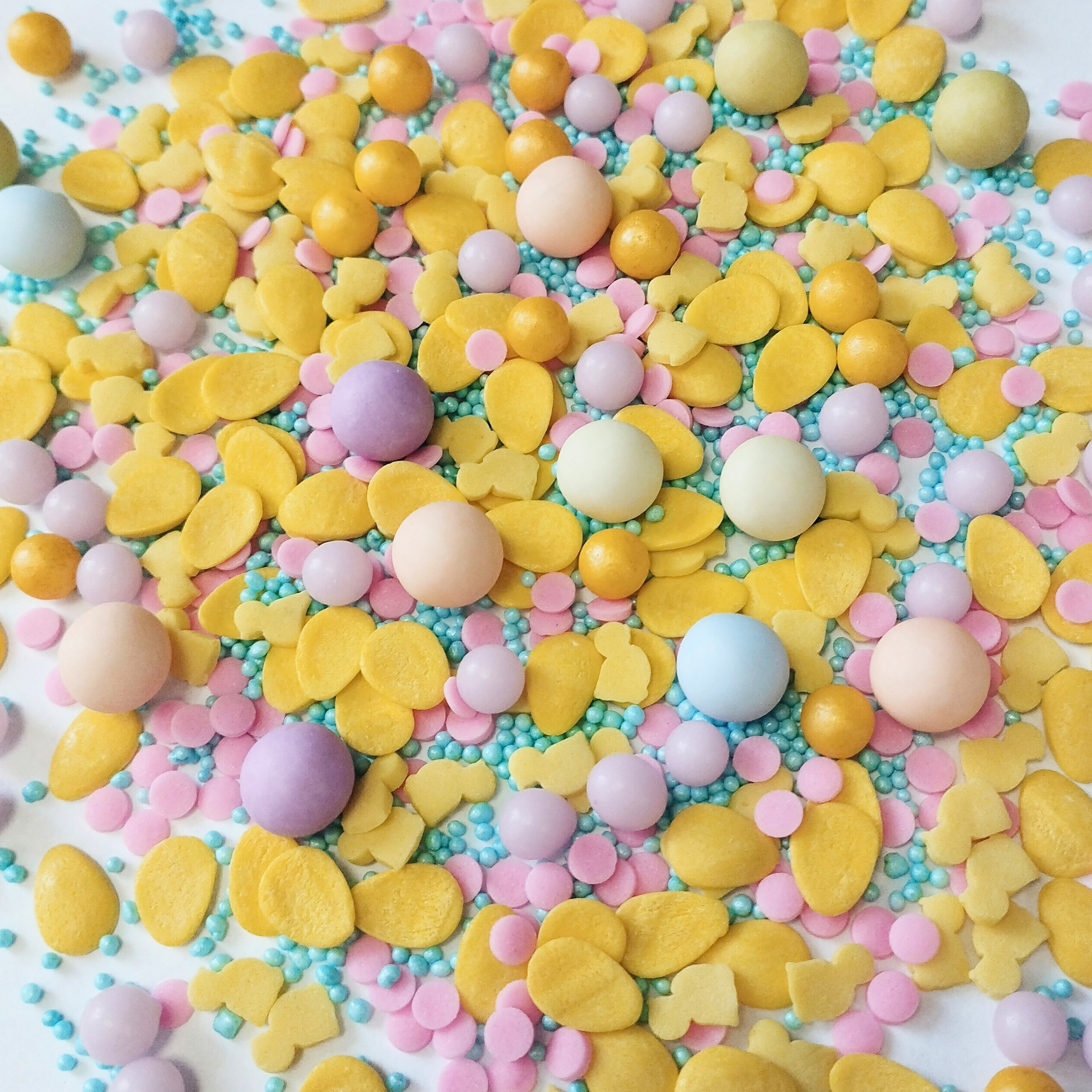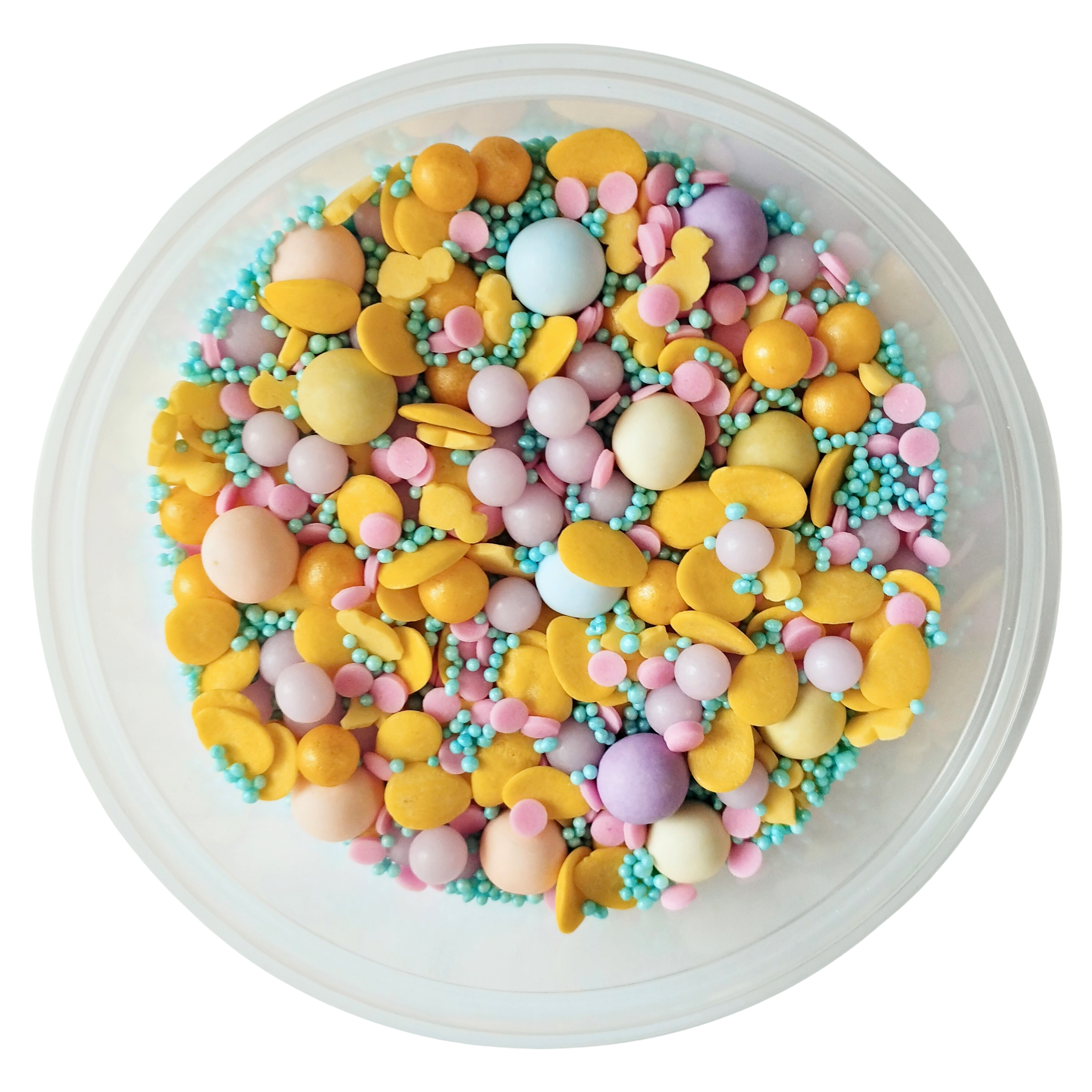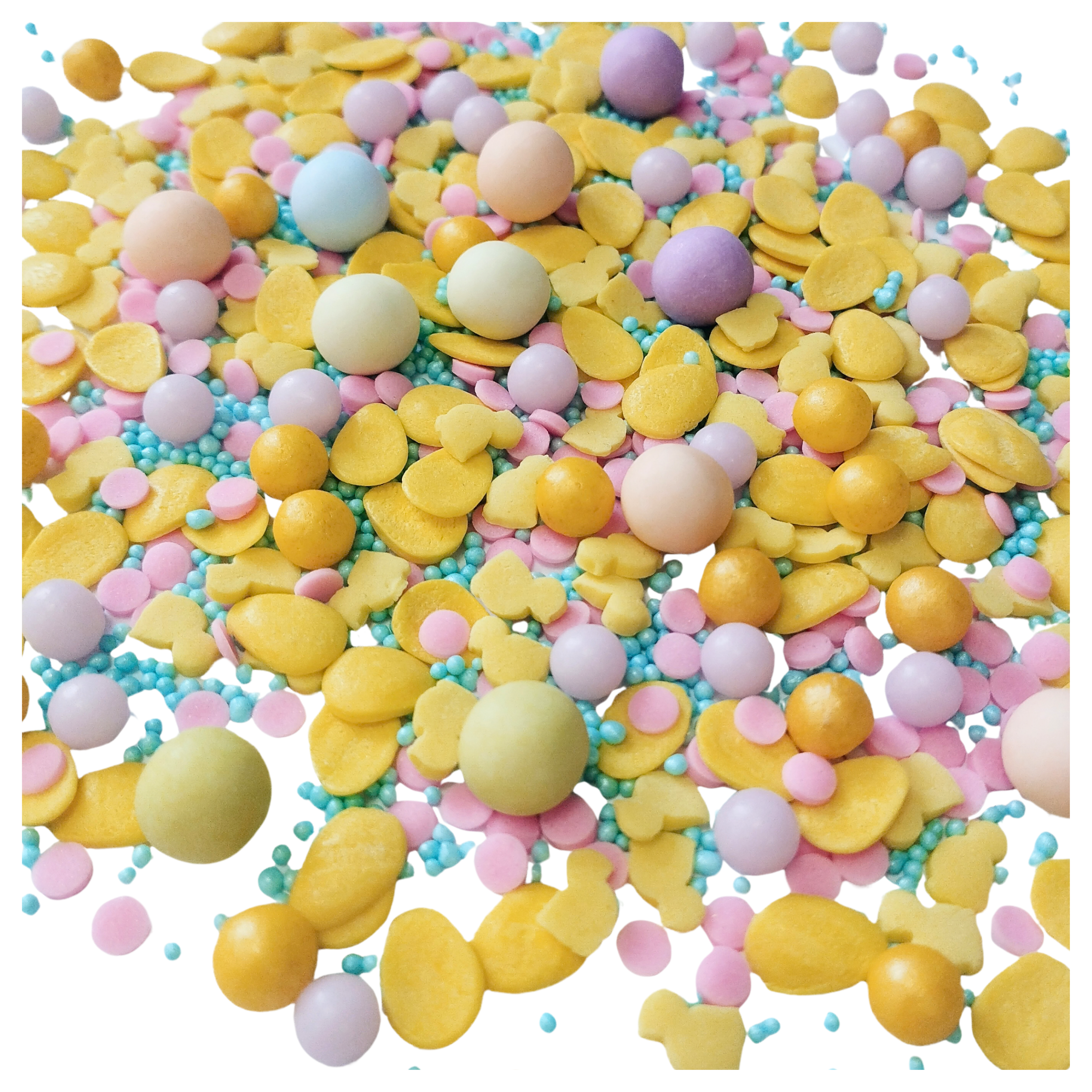 Posypka cukrowa Wielkanocna Jajka żółte Składniki: cukier biały, mąka pszenna wysokogatunkowa, rafinowany wybielony i dezodoryzowany olej palmowy, syrop skrobiowy, zmodyfikowana skrobia kukurydziana (E1422), substancje zagęszczające: guma guar (E412), guma ksantanowa (E415), karboksymetyloceluloza (E466), substancja glazurująca (szelak E904, olej roślinny, etanol), talk spożywczy (E553b), guma arabska (E414), barwnik spożywczy. tartrazyna (E102). Zawiera barwnik E102, który może mieć szkodliwy wpływ na aktywność i skupienie uwagi u dzieci. Warunki przechowywania: przechowywać w suchym i chłodnym miejscu. Wartość odżywcza w 100 g produktu: Wartość energetyczna 375 kcal / 1568 kJ, tłuszcz 3,43 g w tym kwasy tłuszczowe nasycone 0.19 g, węglowodany 84,57 g w tym cukry 58,9 g białko 3,3 g sól 0,01 g