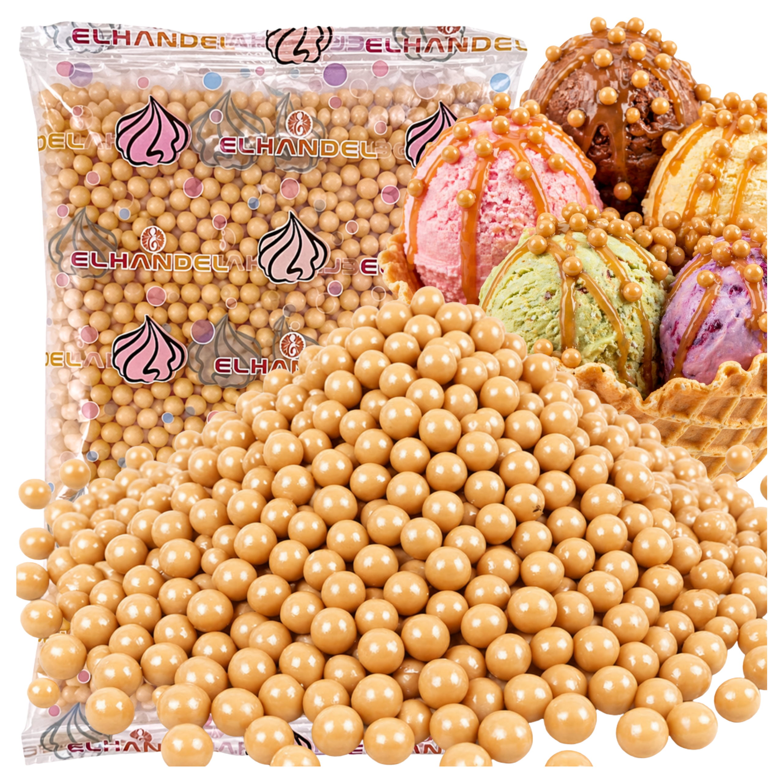 Posypka na tort lody 250g chrupki ryżowe w czekoladzie słony karmel kulki na babeczki