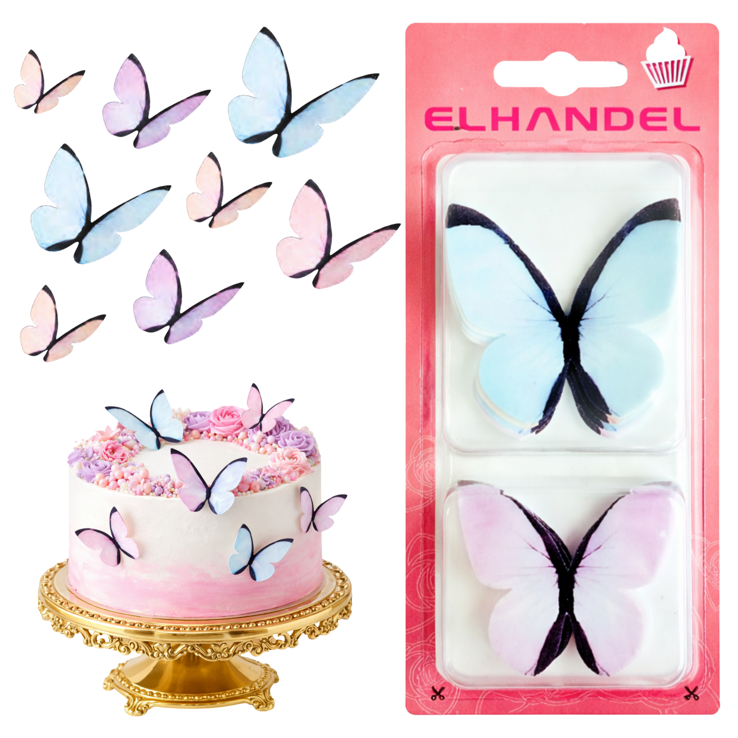 Motyle ozdoby na tort motyl waflowy dekoracje urodzinowe różowe mix 8 sztuk